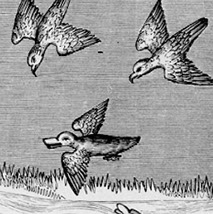 -"Detente"- replicó el más prudente-. Dios nos dará comida para dos años si sabemos ganarla. Ahuyentemos al azor, pero dulcemente,para que no se vaya muy lejos. Arranquemos nuestros cabellos y trencemos lazos que anudaremos a las alas del gallo salvaje. Cuando la rapaz retorne para terminar su festín, se prenderá en ellos. Y,si llegamos a adiestrarla, cazará para nosotros durante el destierro.